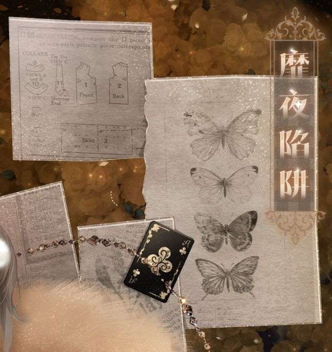 【靡夜陷阱】含正常姿势与特殊姿势,精美可移动摆件“靡夜阑珊”、“独家揭秘”。海报展示妆容为“剪水语”。