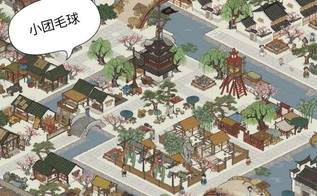 也讲究高低有致和建筑用途的搭配,油树林和书院在处在角落的位置,为下棋,读书营造了私密空间。餐馆那一片建筑偏低可以用旌旗拔高,从小偷或严大人那得来的小装饰是提升精致繁华感不可或缺的元素,既不像树一样挡住建筑,又有独特的用途。