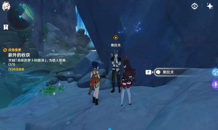 4、把美味的萝卜时蔬汤给猎人喝下去,就可以完成意外的收获任务了。