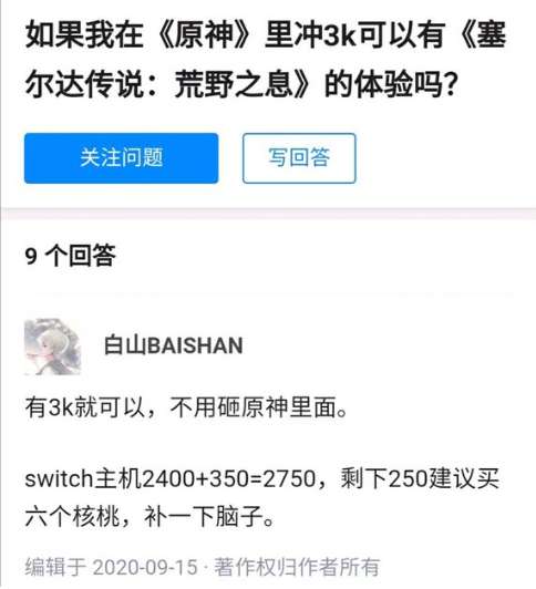 现在来看原神是不是“国产游戏之光”不清楚,是宰猪游戏这点应该毋庸置疑了。至于抄没抄袭塞尔达也变得无关紧要,甚至觉得米哈游是在那这个打免费广告?