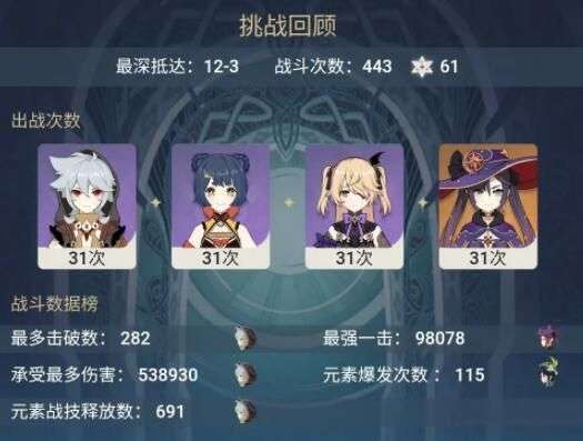 深渊12层与前面几层比,确实不在一个强度。而且要求队伍配置齐全,必须要有双冰双奶双火。