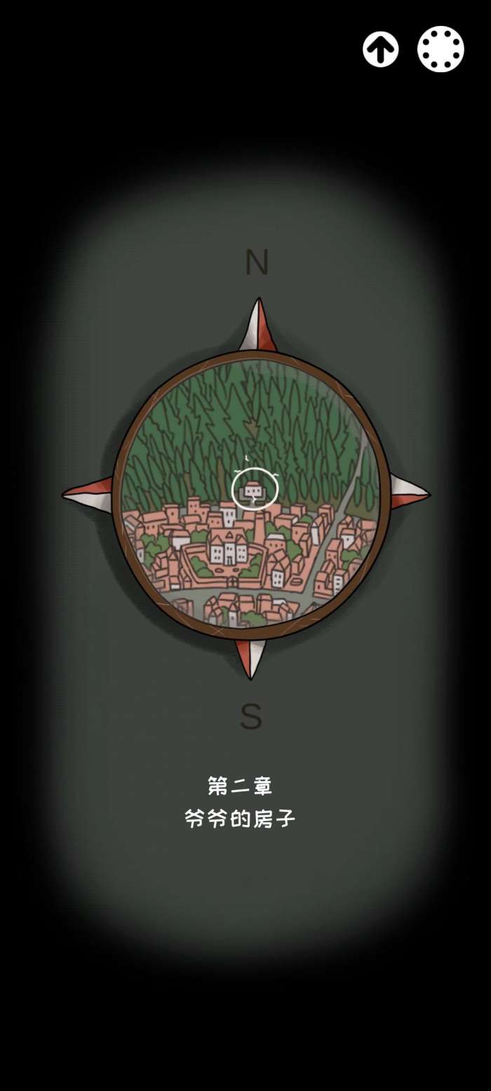 进入第二章,在指南针里找到爷爷的房子,就是这个盘旋着白鸟的房子到达爷爷家,把房子上的白鸟点走这个图记住,上面的数字是用来开密码箱的