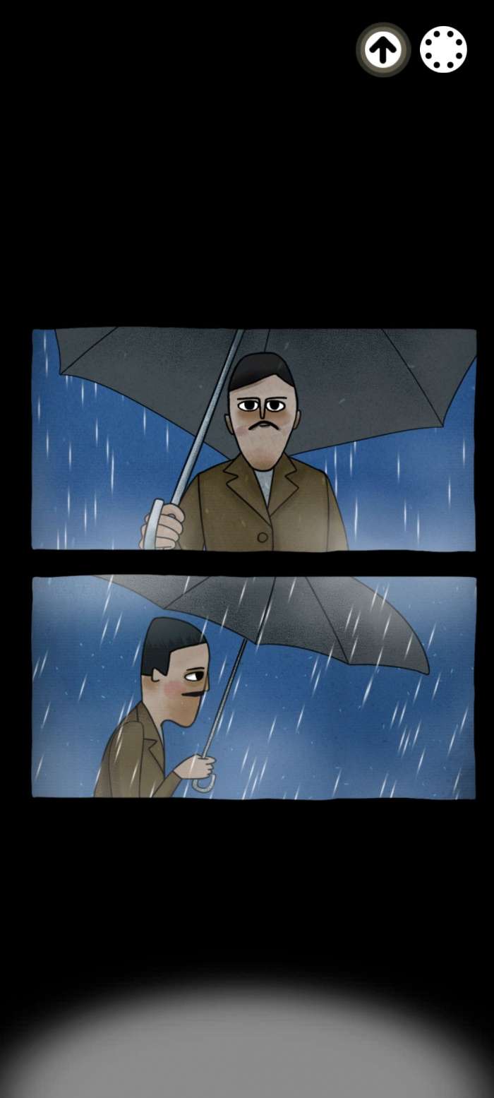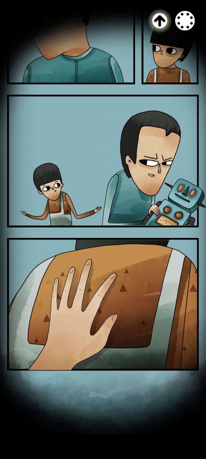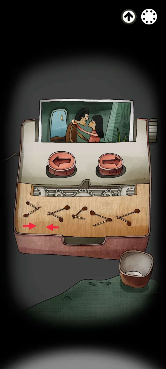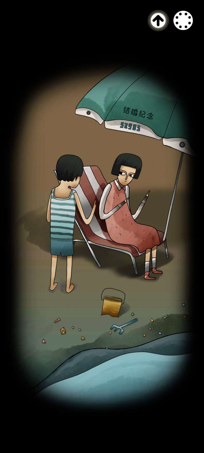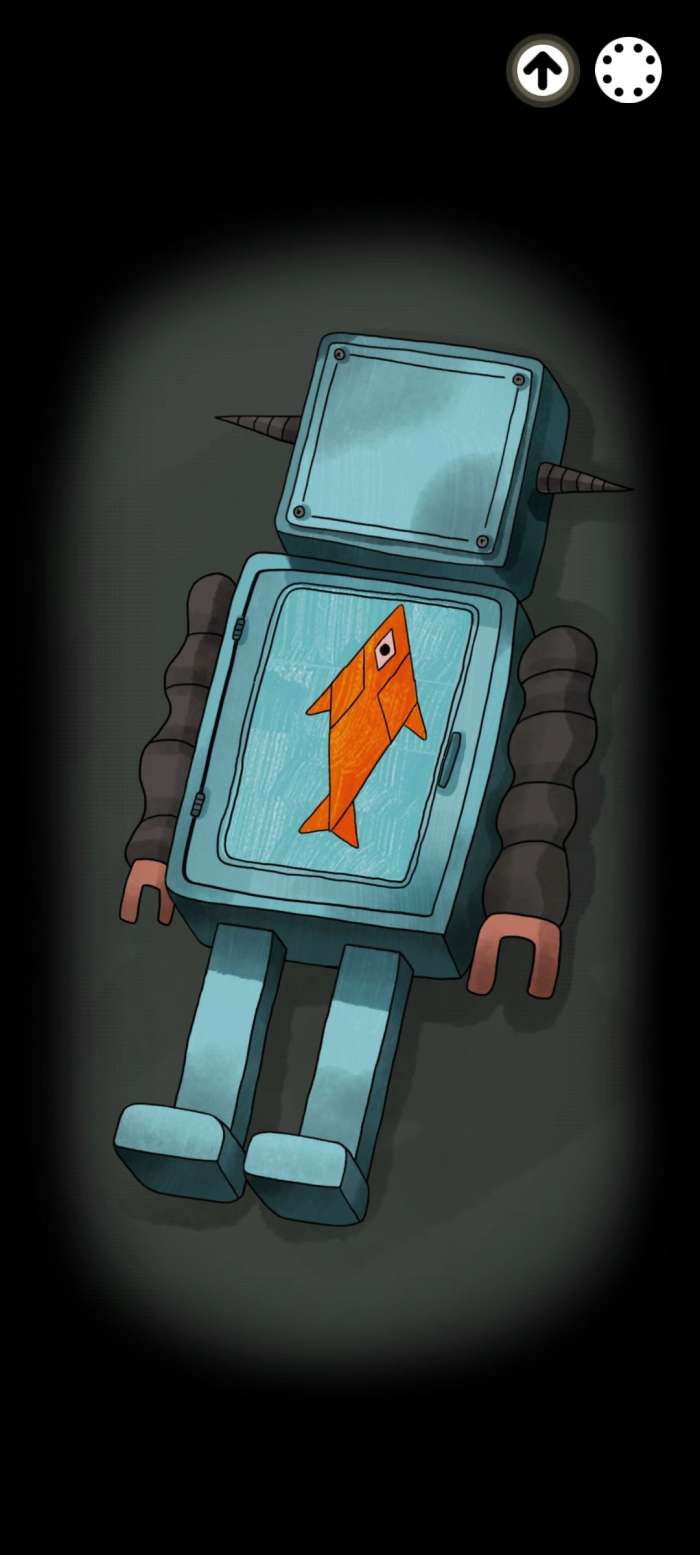 根据之前我们记住的照片上的数字打开密码箱,看到里面有个小机器人,把机器人上的鱼对齐开始调查一直按着屏幕直到把雨伞打开