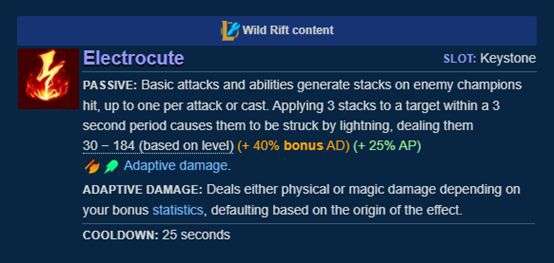 伤害:30-184(基于等级)+40%额外攻击力+25%法术强度