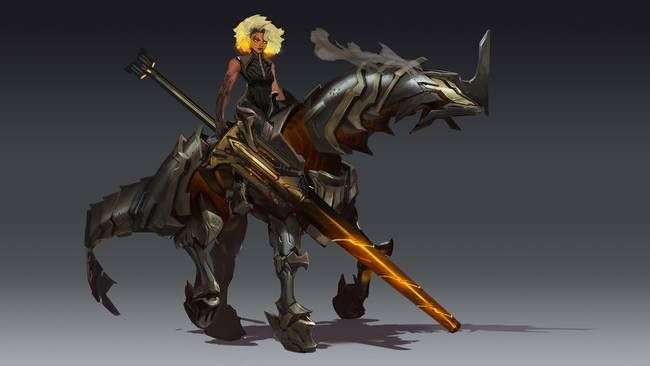 芮尔的形态切换让团队探索了两种截然不同的玩法设想:最能坦的坦克,还有马背上的骑士。因为她能在这两个形态之间切换(当然是有冷却的),所以无论哪个形态都能发挥到极致。当芮尔冲进后排下马以后,她的移动速度会很慢,但会有更高的护甲和魔抗。她要求战,绝不会退缩。