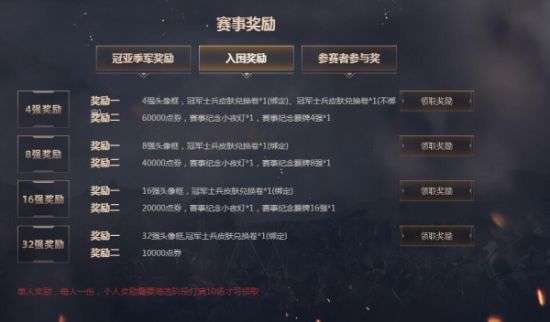 争霸赛赛事奖励一直以来都十分诱人,而本次赛事奖励荣耀升级,冠军队长在赛事结束后还可指定军团外观,还可在攻城模式loading界面展示队伍成员,让全服玩家共同见证这份荣耀!与此同时,其他进入淘汰赛32强的队伍也将活儿的游戏称号、点券、游戏周边等道具奖励!