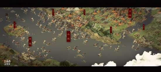 【赤壁之战】剧本以历史上战役所发生的长江流域为主体,对游戏地图进行了全面还原,并参照历史将作战区域放大,对细节的地图元素进行了考究和还原。其中赤壁和乌林将作为特殊城池供玩家在水面上进行博弈,另外还新增了水路、码头、渡口、水军营地等建筑地标,最大程度还原了真实三国赤壁战场,并在此基础上衍生出了水战、火攻、夜袭等玩法,全面演绎赤壁之战的谋略交锋。
