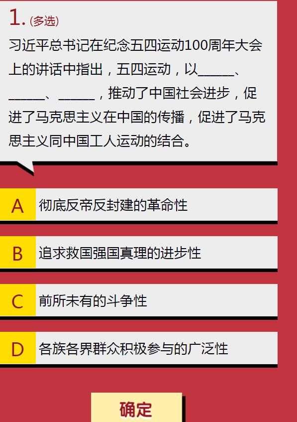 在纪念五四运动100周年大会上的讲话中指出,五四运动以什么推动了中国社会进步,最新一题的答案是什么,相信很多玩家都不知道,下面为大家介绍学生团员寒假十课第二章答案汇总。