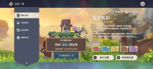 原神福至五彩蓝色在哪?福至五彩蓝色生物在什么地方?2月4日更细的福至五彩任务是拍摄带有蓝色生物的照片哦,具体拍摄点有哪些呢,现在就来告诉给大家吧。
