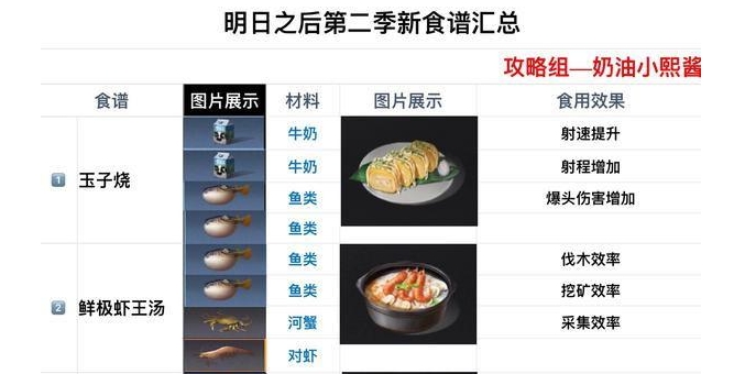 明日之后第二季新增了哪些食谱,第二季新增食谱配方一览,这次一共更新了54个新食谱,食物制作的配方以及具体的类型,下面都会有详细的介绍,帮助大家了解更多关于第二季食谱的内容,想要了解美食制作方法的小伙伴赶紧来看看吧。