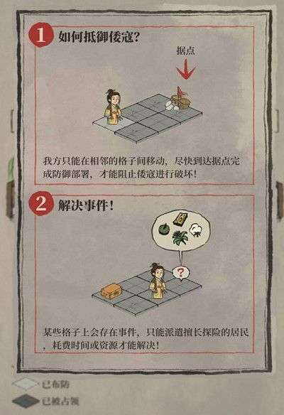 我方只能在相邻的格子间移动,尽快到达据点完成防御部署,才能阻止倭寇进行破坏。