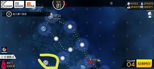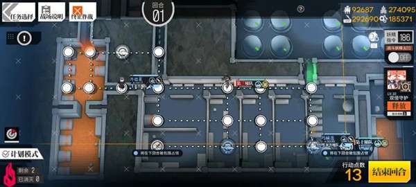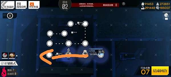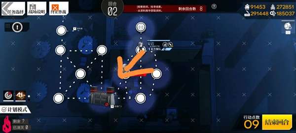 第一回合丹德莱开启左边的路径点(右边的不用管),接着让玛赫莲移动到黄色目标点位(此时任务目标变更)