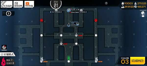 第一回合丹德莱往上移动一格,机场再拉出一队与丹德莱换位,将门口两个跳跳打掉后丹德莱移动至绿色点位开路径点,回收人质。