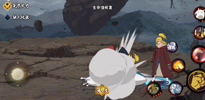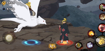 使用一技能时,秽土迪达拉会召唤出两只“大聪明”,向前方的敌人发起攻击。