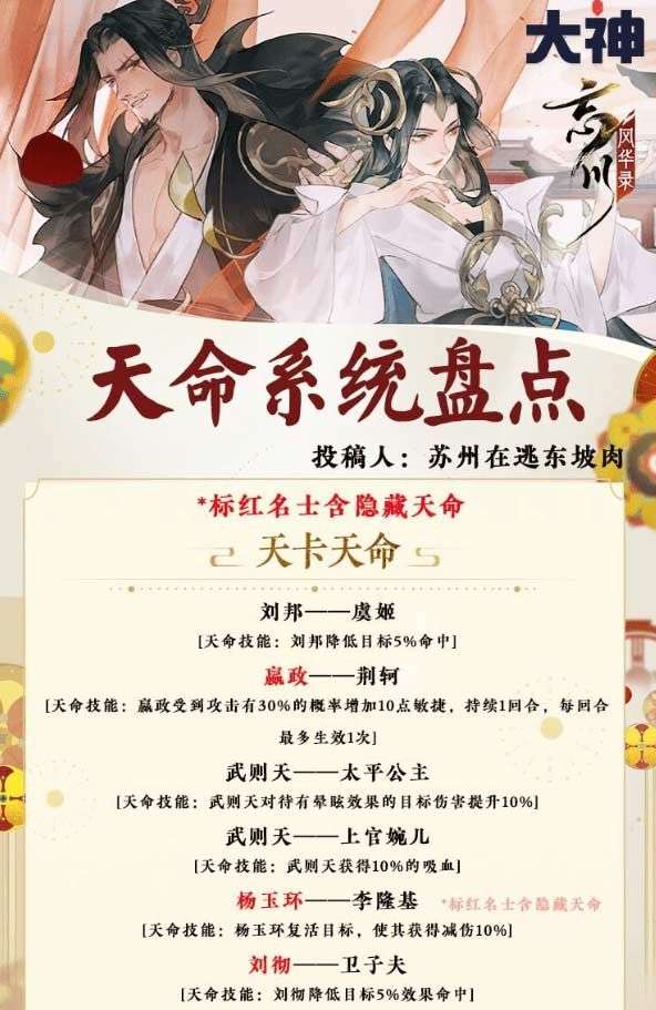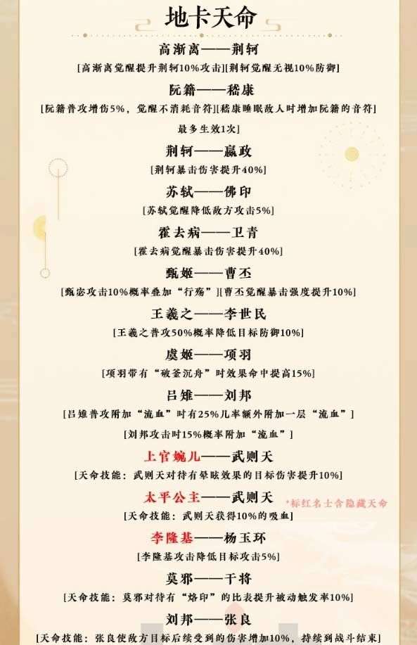 名士之间存在“天命”羁绊,只有将拥有天命的两位名士放在一起才能发挥最大的效果。