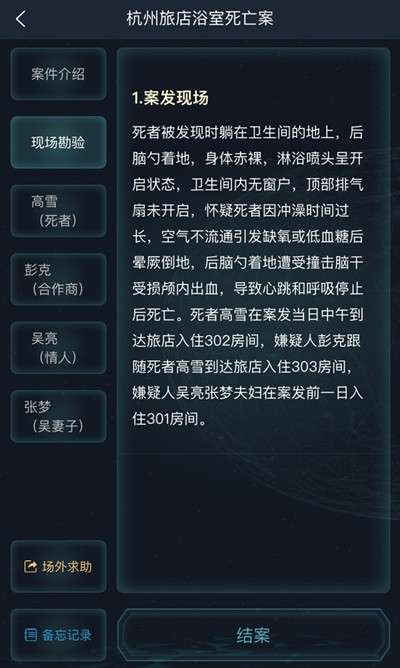 犯罪大师杭州旅店浴室死亡案正确答案大全: