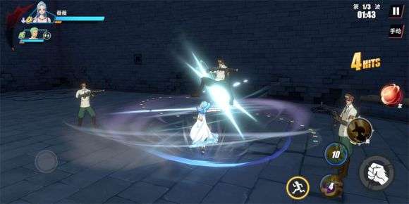 第2个激斗技能:乔巴展开双臂旋转飞舞,可以使用摇杆向指定的方向移动,对身边的敌人造成360旋转的攻击,这个技能在对局中适合在保持一定的距离时使用这个机斗技,向敌方靠近封闭对方的走位,打出控制