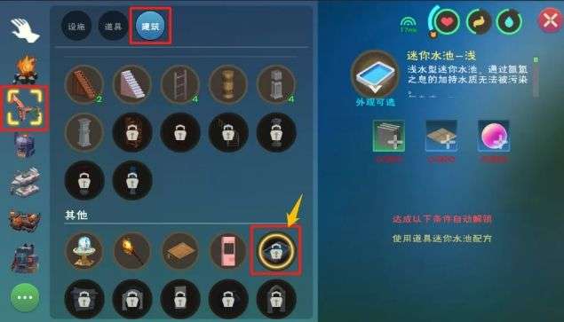 迷你水池需要使用图纸解锁其制作方法