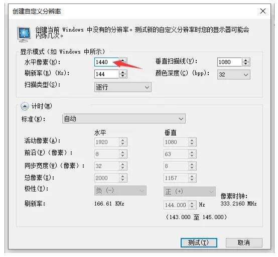 仅修改标注的水平像素 刷新率根据自身显示器修改