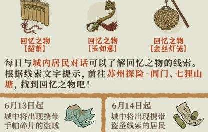 6月14日起,城中将出现知晓【盗圣线索】的居民,收集关键线索助力破案。
