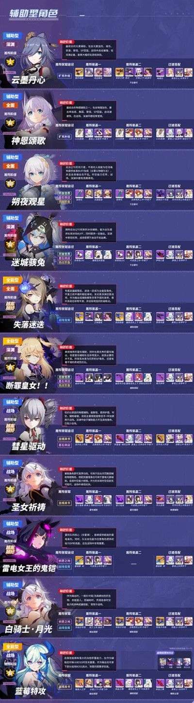 1、推荐表与养成推荐的职能已经划分开,故推荐表中不再推荐过渡型角色。