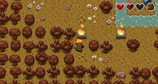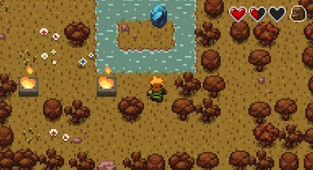 在火盆后面对着矮小的树木射击,点燃的箭矢会燃烧掉树木(必须马赛克模式)这样能通过不去的路并且开启元素“改变未来”后面一路也利用这种办法就能过去,来到一座雕像前,发现没有能量了,必须点燃两边的火把才行,先去右下角变成马赛克,到右下角点燃那两个火把(中途顺手炸开石头),站在右边的火把下面对着上面射击,可以点燃雕像下面的火把,在左边的火把射击,可以烧掉挡路的树,接着回到雕像前,上面位置火把对应的左边,先把石头炸开,然后绕道后后面射击即可点燃两处火把。