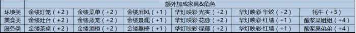 每种事件的额外加成家具是固定的,这里是收集到的家具对不同时间的加成影响,大家可以看一下。