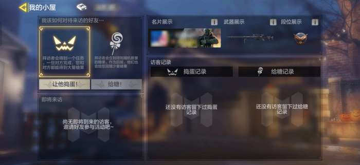 战士们自己的小屋也会有好友前来拜访哦,可以设置给糖或者对ta捣蛋!选择给糖好友会获得随机数量的糖果并回赠少量糖果,而选择捣蛋则好友会获得一个任务,完成后双方都可以获得大量糖果!怎么选择,就看战士们啦~