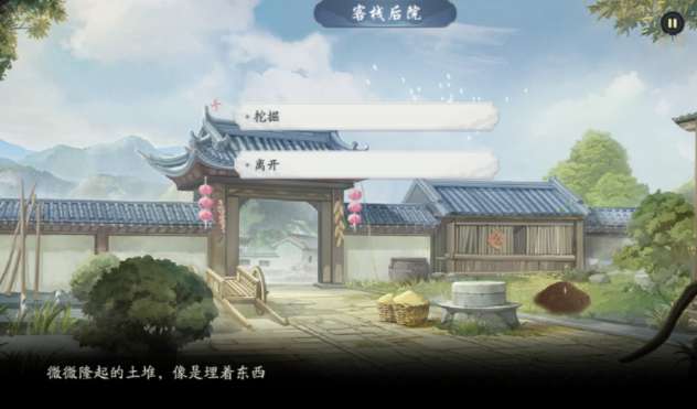 6、返回客栈,进入客栈后院,点击闪光点接取任务:挖掘;点击地面甘草接取任务:查验;