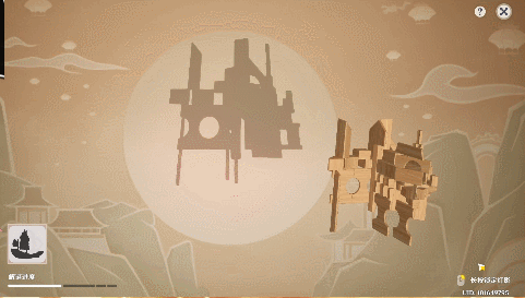 2、旅行者们需要调整『藏影灯」机件的角度和位置,将它们的灯影组合成完整的图案,以解开相应的灯谜。