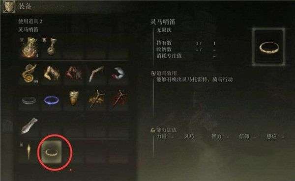 找到这个激活点之后就在这里坐下来,玩家就能成功触发梅琳娜剧情,触发这个剧情之后会得到灵马哨笛,灵马哨笛就是用来召唤灵马的,玩家可以在背包中使用灵马哨笛这个道具,只有用了灵马哨笛才能召唤出灵马,召唤出了灵马之后就可以坐上灵马,开始骑马了。