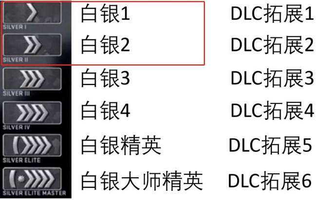 2.白银阶段下还有6个等级,等级(1-6)白银一级、白银二级、白银三级。白银四级、白银精英、大师级白银精英。