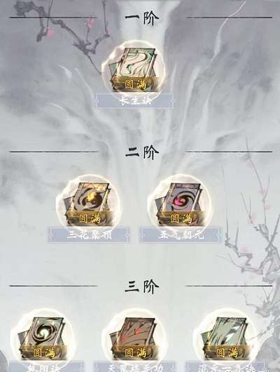 3、一阶到三阶所需功法资源较少,而且又有主线要求,推荐全部圆满。