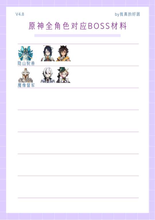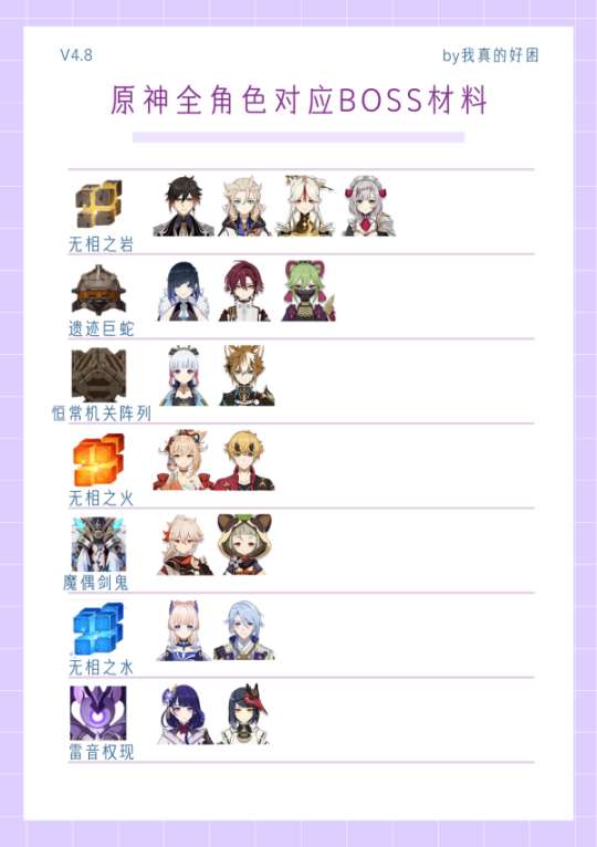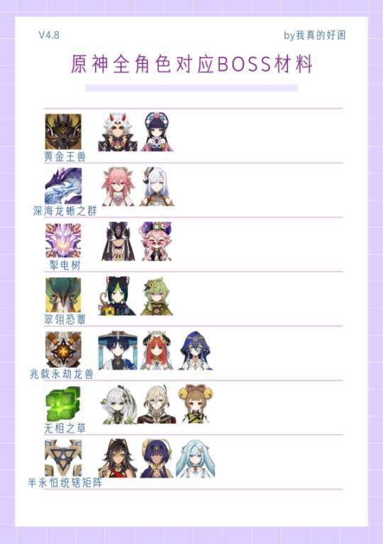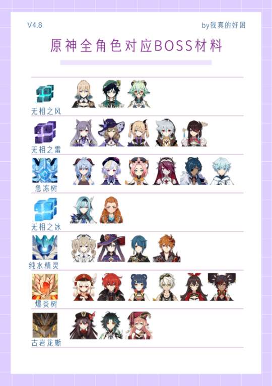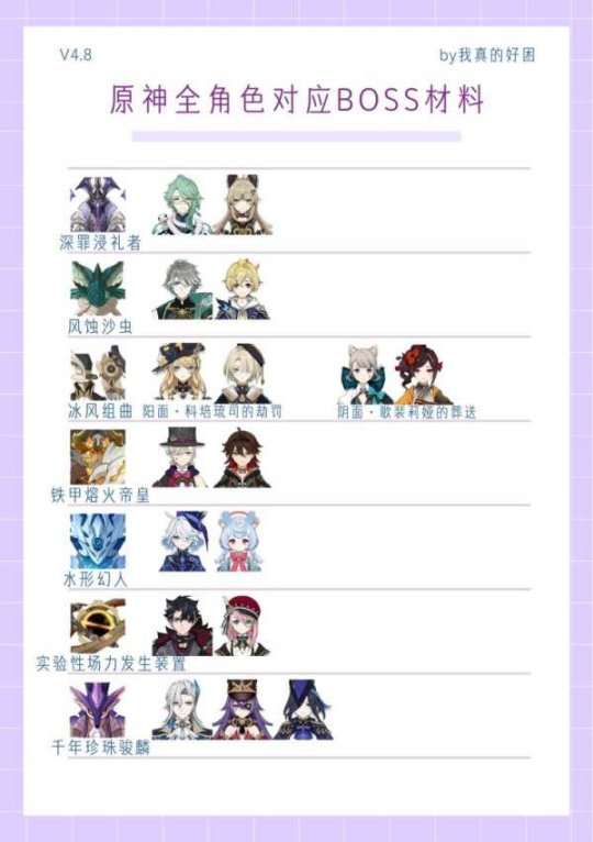 各位旅行者,大家好,今天为大家整理了原神全角色对应的boss材料,便于大家需要时查找。