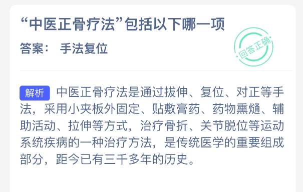 以上就是“中医正骨疗法”包括以下哪一项?支付宝蚂蚁新村最新答案2026年1月2日,更多精彩内容,请点击关注pk游戏网更新!