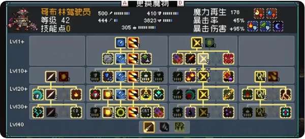 定位:输出手,半辅助手,debuff,buff,在写这篇攻略之前其实我也看过很多其他人关于哥布林战队的攻略,而很多人都是把加物理魔法攻击的技能点点在了哥布林之王上,我仔细想其实并无道理,哥布林王技能树中带有的多重魔法/力量强化可以使其获得更多的强化加成,使其自身的攻击力更上一层楼,但哥布林之王其特殊的主c身份相较于花费一回合的时间进行强化,不如在队友的强化下在第一回合直接进行攻击,因此我将魔力与力量的强化点到了哥布林驾驶员的身上,由于哥布林驾驶员有着冥想的特性和火焰护盾的优秀叠甲技能,因此更加适合在前几回合中充当一名辅助手的角色同时可以叠甲充能效果为后面的输出做出铺垫。当进行了第一个回合的强化后就可以开始输出了,在输出方面,其有着不稳定护盾这一强力的输出性被动,因此哥布林驾驶员往往要配合叠盾手一起出场,让其护盾转化为高额的伤害,同时在debuff方面,其有着充能危机,野火,弱者支配等被动光环效果,使其能为对手施加debuff的同时增加自己的输出能力。