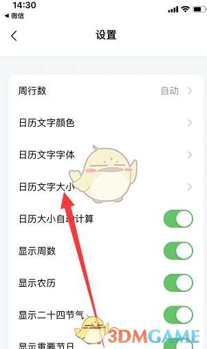 2、然后在设置页面上方点开日历文字大小