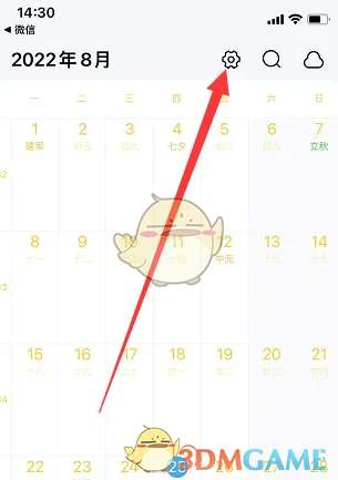 1、首先打开日历清单首页,在页面的右上方点开设置
