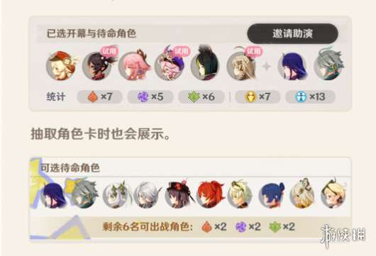 在已选角色区域,会统计各分类下的角色数量,并在抽取角色卡时展示。