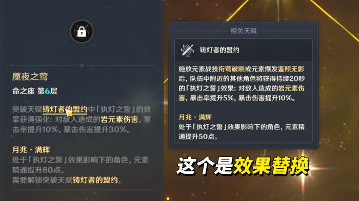 3命,元素爆发等级+3。增加大招提供的精通转基础伤害,有提升但未涉及机制,不强求。