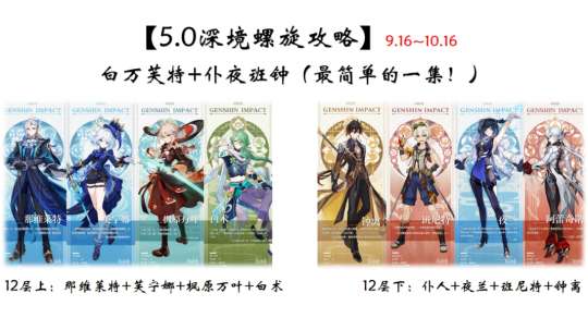 大家好,今天为大家带来深境螺旋的部分队伍推荐和操作演示。在此之前,我先要提醒大家遵守法律法规,注意使用剂量。这一期深境螺旋比较简单,我将在文章开头简述一些细节注意事项,希望能给大家提供一些思路。需要说明的是,我的操作不完美,有缺陷,而且可能会有某些角色缺失,可以在评论区或私信讨论。此外,有很多角色可以轮替使用,不需要完全公式化配队。如果想了解这些队伍的角色如何培养,可以去冒险互助-阵容广场,查找我的配队进行辅助理解。