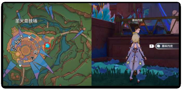 我们需要先去做纳塔世界任务「合成台疑案」后需要在里面的时间是夜间的时候,然后去纳塔圣火竞技场东北方的传送锚点下方可以找到这个桑科约克交流以后就可以获取了。