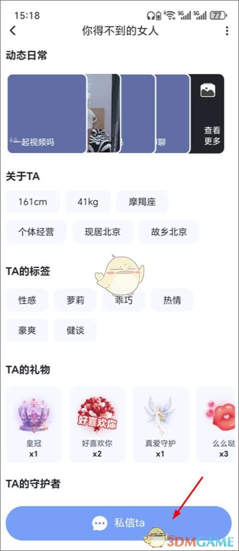 2、接着下滑,点击私信ta;