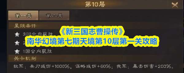以上就是《新三国志曹操传》南华幻境第七期天境第10层第一关攻略,更多相关攻略,请关注pk游戏网更新!