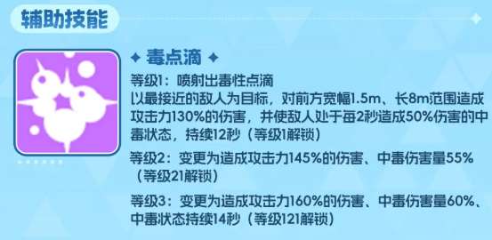 而瑞贝卡的辅助技能叫做毒点滴,使用起来的话带来的中毒效果也是非常明显,此时可以用瑞贝卡的这个技能来喷射出各种毒性点滴,攻击离他比较近的目标,对敌人进行输出的时候可以造成攻击力上面130%的伤害数值,受到他此类攻击的话,敌人会一直处于中毒状态当中同样也是每2秒就会造成50%的伤害,后续的10秒时间之内带出来的这个伤害一共是有6次的,而她的第二个辅助技能叫做合成肾上腺素,这个技能在游戏当中可以快速的刺激队友的效果,在10秒之内给目前攻击力效果上面最好用的队友带来生命、攻击数值增加20%的效果,而且她攻击力增加20%之后,暴击同样也是会有10%的提升,所以对于当前的手术类型角色来说,瑞贝卡带来的这类效果绝对是非常强势的。