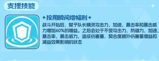 而支援技能效果上面是在战斗一开始的时候,瑞贝卡身上就可以根据她的队长身份带来一定的攻击以及速度加成,另外在暴击概率以及威力效果上面达到了增益之后,同样是60%之后的话,瑞贝卡自身也会不受攻击防御速度各方面的一个数值限制,此时只要契合度达到的话,她的额外伤害量是会有一定增益效果的,所以瑞贝卡不会受到对面很多控制角色的影响。