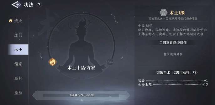 玩家在打开菜单栏之后,只需要点击一下功法。马上就能够查看目前少侠所修的功法,还有当前的品级。功法也会分成多种不同的流派,每一个不同流派的技能还有长处都是有所区别的。武道主要擅长的是单兵作战,可谓是攻守兼备。道门擅长的是爆发能力,从输出方面来看比较强劲。术士主要擅长的是拉扯。