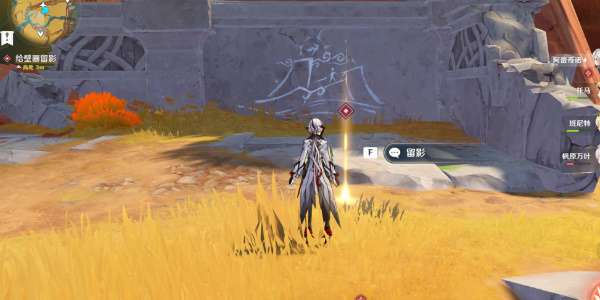 4、然后玩家直接来到彩石顶的右边这个传送点出来之后跟着任务追踪走。来到这个壁画的位置。