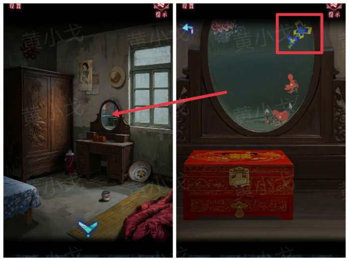 2.点击梳妆台,查看镜子上贴着的蝴蝶