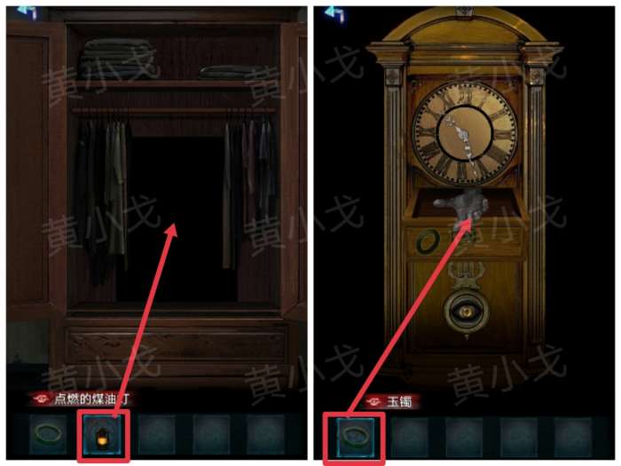 3.打开衣柜,拉开衣服,获得【未点燃的煤油灯】